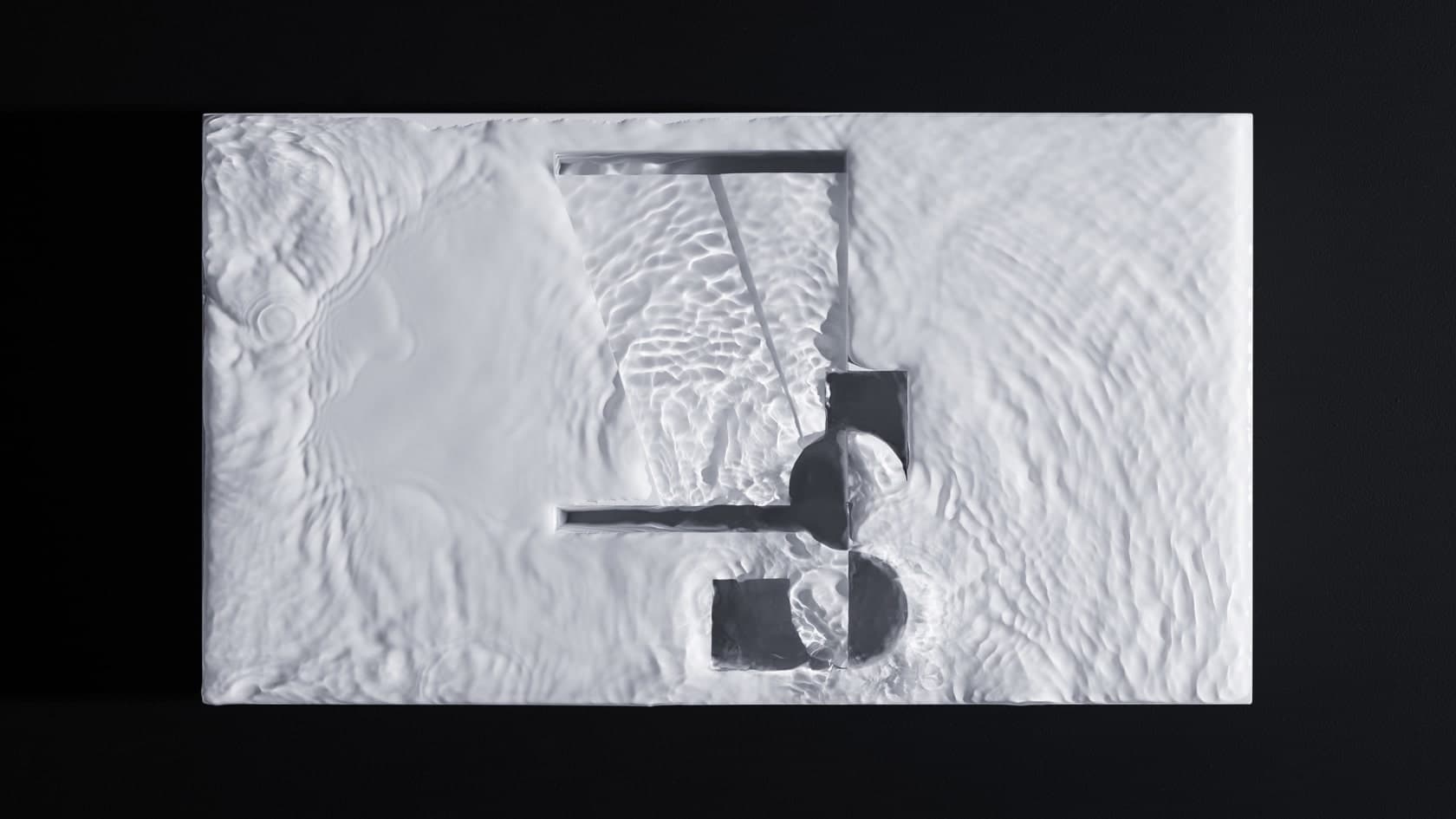 Much in the same way as photographic paper starts to reveal its image in the darkroom, our sculpture still requires human interaction and judgement to allow these forms to submerge and surface.